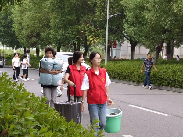 为保障新生报到便捷高效,学校提前统筹部署、多部门联动,制定了周密的迎新工作方案。今年,mksports在线登录_mk(中国)一站式服务体育持续优化“一站式”报到服务,将身份核验、入学登记等流程整合办理,极大提升了办理效率;专设“绿色通道”,为新生提供快速入学保障。此外,学校在黄石北站、大冶北站等黄石四大交通枢纽安排行李转运车辆,教师与志愿者全程引导帮扶,从车站到宿舍实现了“入校即入住”的无缝对接。在工作人员的耐心指引下,新生高效完成报到流程,从容迈出大学生活第一步。刚办理完手续的新生程林感慨道:“‘一站式’报到名不虚传,十分钟就办完了所有手续,还有志愿者学长直接帮我把行李送到了宿舍,这种高效和温暖让我对学校充满了好感。”