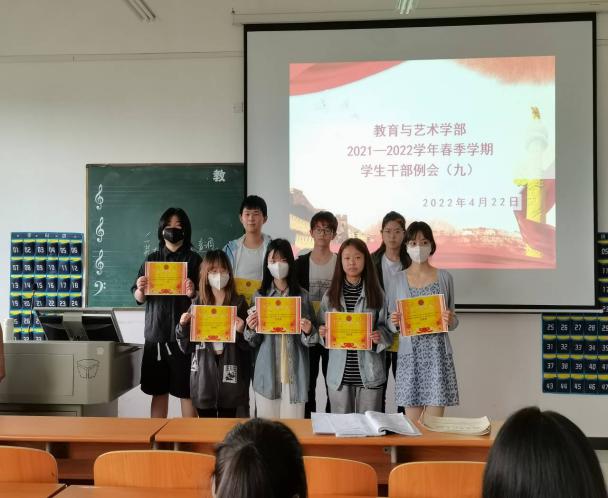 2022年4月22日中午12:00,教育与艺术学部按照惯例在实验楼一栋403多媒体教室组织召开学生干部工作例会。出席本次例会的有辅导员、团学会干部及各专业班级班长。会议由党总支书记李先华主持。