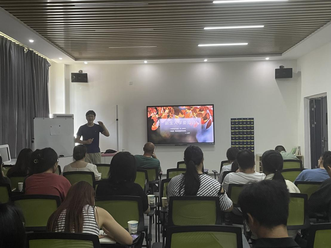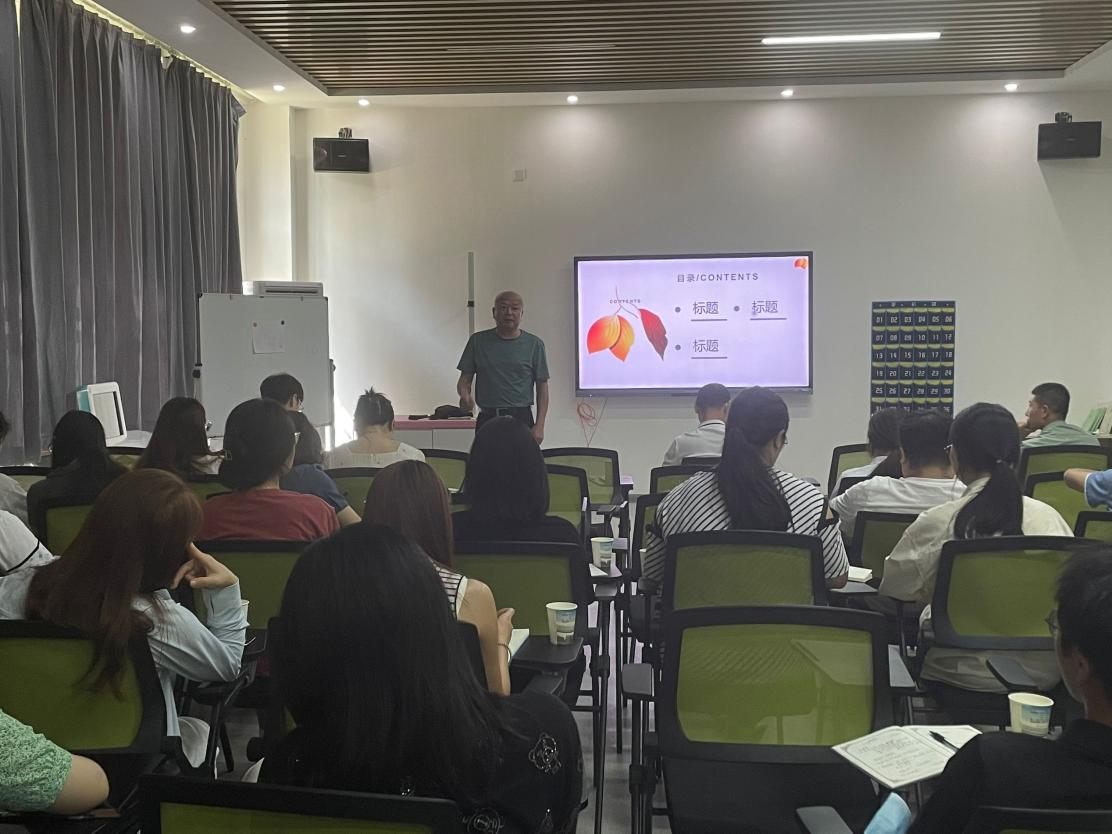 首先,尹誉霖以学生手册中的有关规章制度与条例为切入点,阐述了学习、寝室安全、防诈反诈等学生日常管理与教育中的重点。他的讲述极具个人风格与特色,从尹老师关于学生的姓氏、性别、年龄、民族、籍贯、生日等数据的统计,建议新生辅导员做好新生入学前的熟悉和了解。其次,总支书记李先华强调紧紧抓牢“两点一线”模式管理(文明寝室创建、内涵课堂建设、积极参加校园文化活动),树立一切为了学生的服务理念,只有这样“思想才不会滑坡,工作才能办实”。最后,学工部部长汪崇文做了强调补充,希望新生辅导员们做好学生反诈防骗意识的培养,叮嘱学生下载并安装反诈APP;希望辅导员带领新生学好《学生手册》,在日常学生管理和教育中做到“有法可依”。