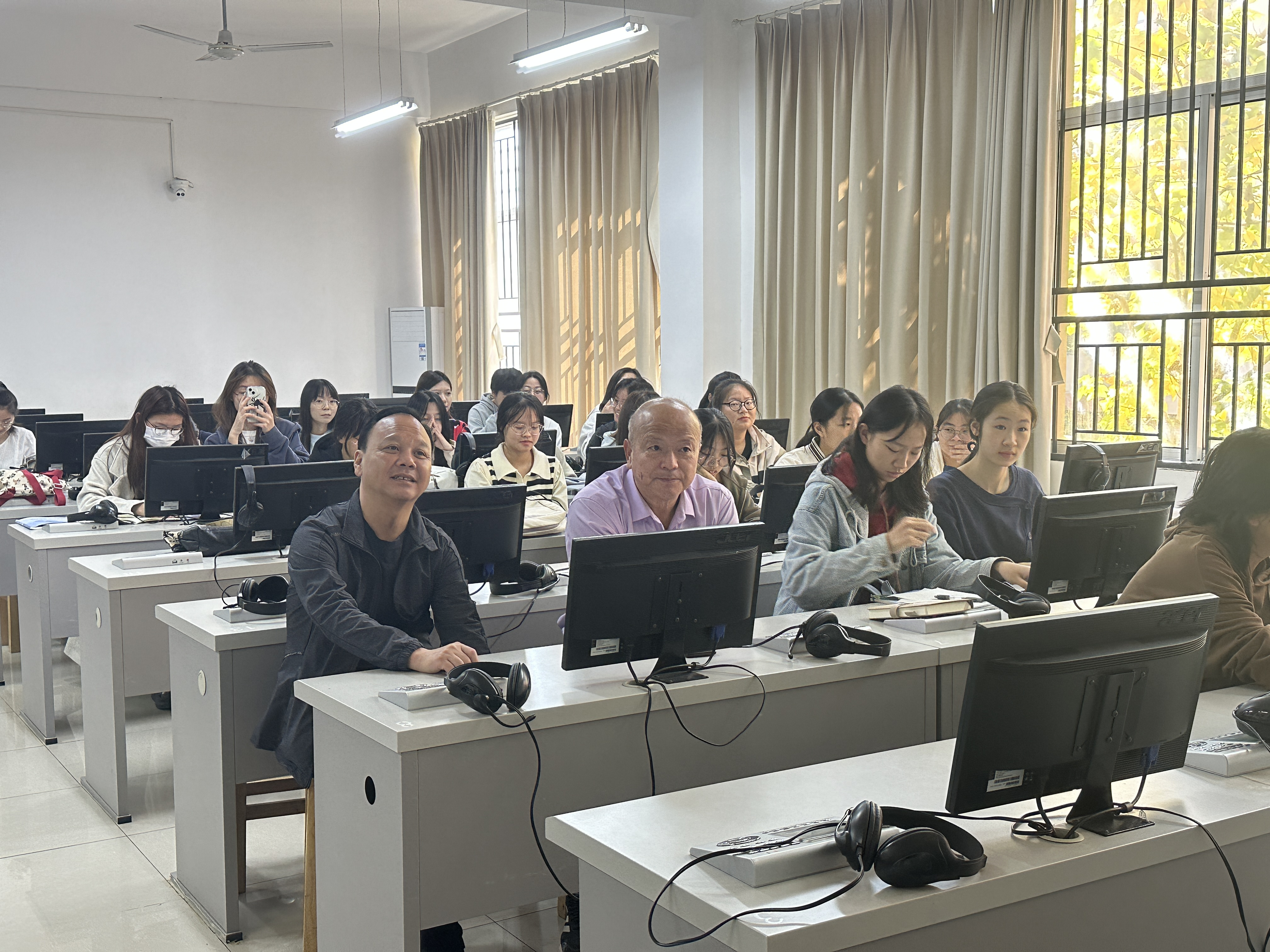 金秋十月,为贯彻落实以班风促学风,2023年10月23日10:00,学前教育2301、2302在教学楼2B201开展课前十分钟“唱儿歌”的活动。教育与艺术学部主任王文、党总支书记李先华以及全体辅导员聆听了两位学生的儿歌表演。