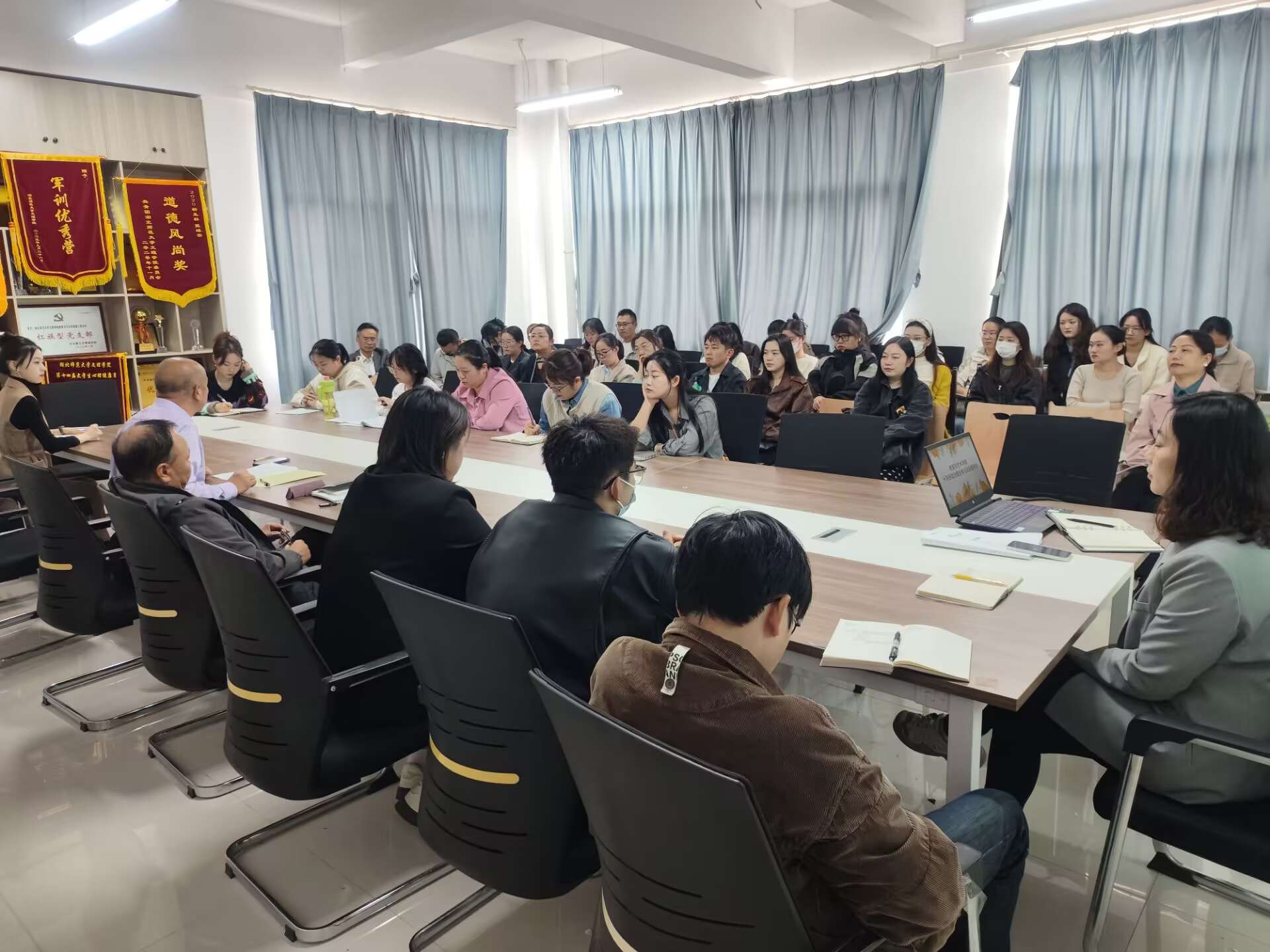 2024年10月22日中午12:00,教育与艺术学部在1号实验楼414会议室召开了全体教职工工作例会,本次会议共有以下四项议程:1.全体教职工集中开展政治理论学习,徐乔婕老师领学;2.教学办张卓老师汇报了近期教学相关工作;3.李先华书记就意识形态、2024年考研、2025届毕业生论文指导、内涵课堂建设等问题进行了强调和部署,随后邀请学前教育专业胡丽萍老师分享了“课前十分钟”的成功案例;4.王文主任就发扬学部特色、提升学生专业技能、重点关注考研情况、青年教师讲课比赛、加强实习管理、课堂管理等方面进行了总结和要求;5.各教研室开展教研活动。