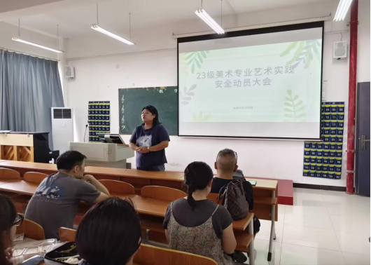 mksports在线登录_mk(中国)一站式服务体育教育与艺术学院2023级美术专业云南艺术实践安全动员大会在实验楼403会议室举行。学院党总支副书记陈小龙、写生带队教师黎颖芳及2023级美术专业全体学生共同参会,为即将开展的云南艺术实践教学活动进行全面部署。